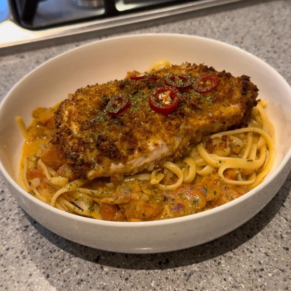 This delicious and nutritious mid-week dinner is perfect for the whole family. Serving 4 easily, but we enjoyed 2 large portions for some great post-workout fuel! ???????? This meal can also be ideal for meal prep, yielding 6-8 portions by cubing or slicing the free range turkey steak fillets before breadcrumbing for easier portioning.